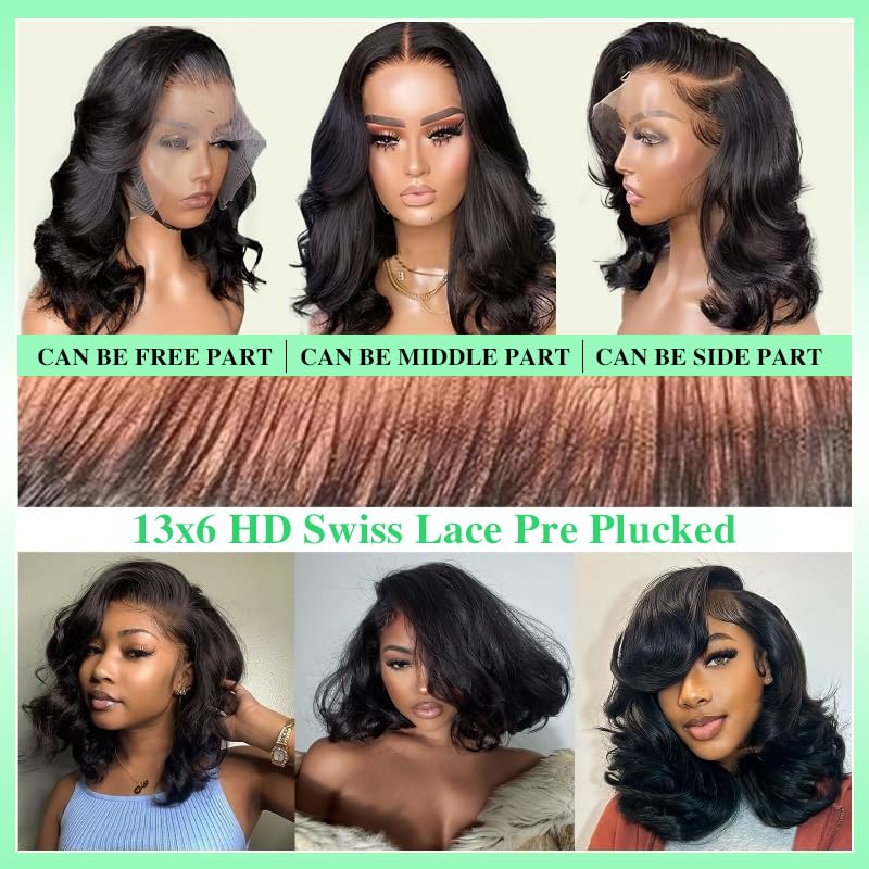 Peruca Frontal De Renda Hd 33 X 15 Cm, Cabelo Humano Sem Cola, Pré-arrancado, Densidade De 200%, Peruca Bob, Ondulada, Cabelo Humano Pré-arrancado Para Mulheres Negras, Cabelo Humano Natural Sem Cola, Cabelo Humano Para Iniciantes, Peruca De Cabelo Humano.