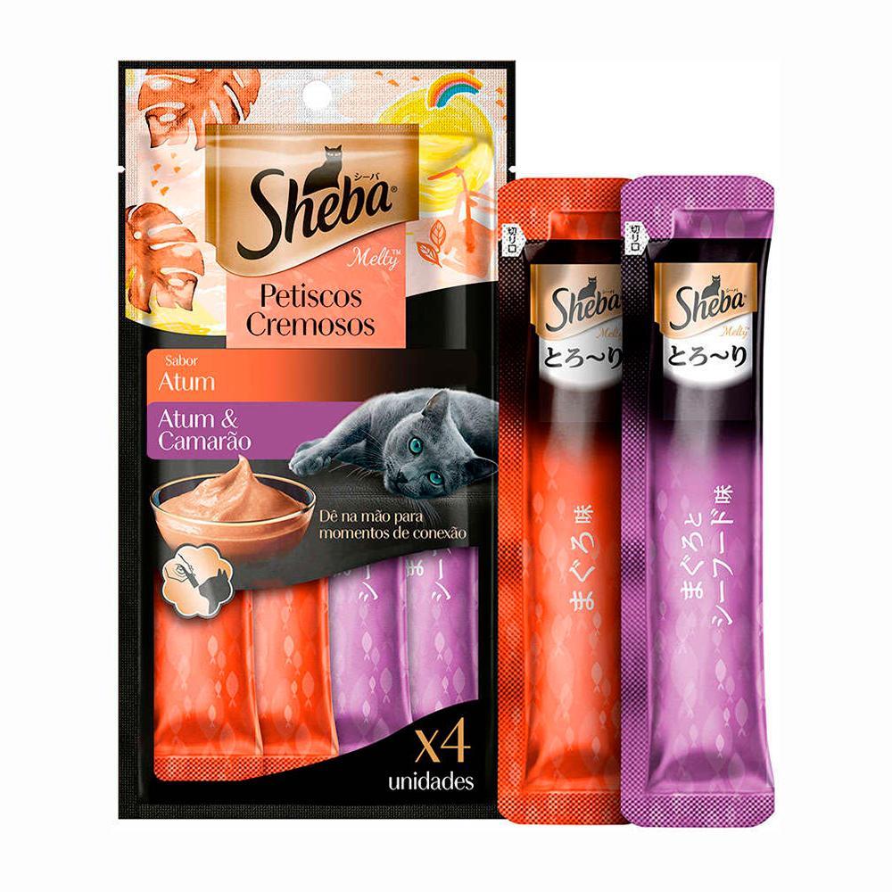 Petisco Sheba Cremoso Para Gatos Sabor Atum E Atum Com Camarão 4 Unidades