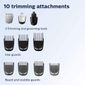 13 acessórios para todas as suas necessidades de cuidado: aparador de aço de tamanho completo, um aparador de precisão de aço, um aparador de pelos de nariz e orelha, 3 protetores de aparar o cabelo, 3 guardas de aparar a barba, uma bolsa de armazenamento de acessórios e uma escova de limpeza. Ao contrário da concorrência, não é necessário óleo para manter o desempenho de alta qualidade. As lâminas e proteções são fáceis de retirar e enxaguar. Máxima precisão com tecnologia DualCut, que inclui 2 x mais lâminas autoafiáveis. As lâminas de aço se afiam enquanto funcionam, resultando em lâminas que permanecem afiadas como o primeiro dia após 2 anos de uso. O aparador mais vendido da marca nº 1 de aparador. Ao contrário da concorrência, não é necessário óleo para manter o desempenho de alta qualidade. Lâminas e protetores são fáceis de descolar e enxaguar. Para tipo de cabelo: todos os tipos de cabelo. A lâmina é feita de metal. O MG3750 é o número do modelo indicado na embalagem, faz parte da série Multigroom 3000.