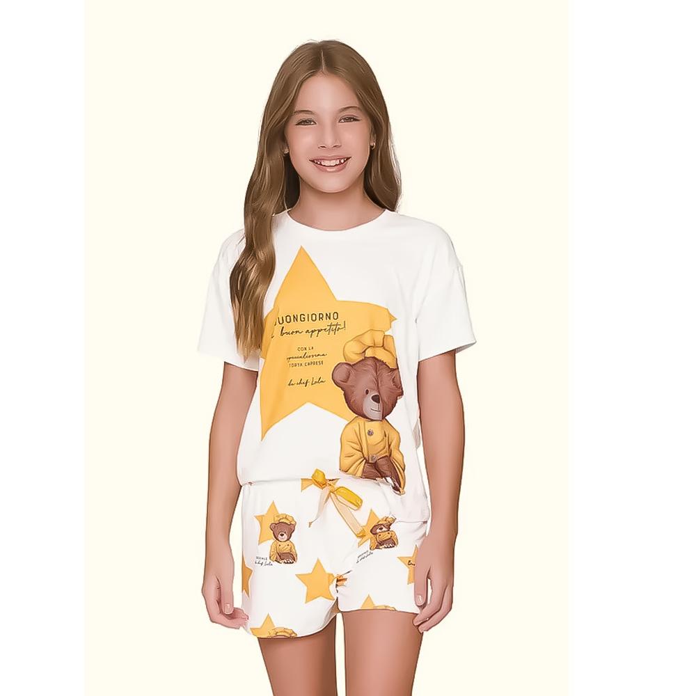 Pijama Curto Feminino Infantil, Fabricado Em Sublime Touch, Malha Com Toque Pele De Pêssego, Exclusiva Lua Luá. O Chef Estrelado Mais Especial Do Universo, Lulu Bear, Toma A Frente Desta Peça, Trazendo Em Primeira Mão Uma Receita Italiana Deliciosa: Torta Caprese. Acabamento Em Ribana Canelada, Etiqueta Em Courino E Cadarço Personalizado Dão Um Toque Final À Essa Proposta Única!pijama Curto Feminino Infantil, Fabricado Em Sublime Touchestampa Com Nosso Chef Estrelado Lulu Bear E Sua Torta Italiana!shorts Com Acabamento De Elástico Forrado, Cordão Personalizado E Etiqueta Em Courino Dão O Toque Final À Essa Peça Únicacomposição: 96% Poliéster / 4% Elastanocuidados: Nossas Peças Possuem Cuidados Especiais Para Lavagem, Para Manter A Durabilidade E Qualidade Do Seu Pijama Siga As Instruções De Lavagem Especificadas Na Etiqueta Do Produto.composição.composição Blusa 96% Poliéster / 4% Elastano Composição Shorts 96% Poliéster / 4% Elastano.imagem Meramente Ilustrativa. Acessórios Não Inclusos.
