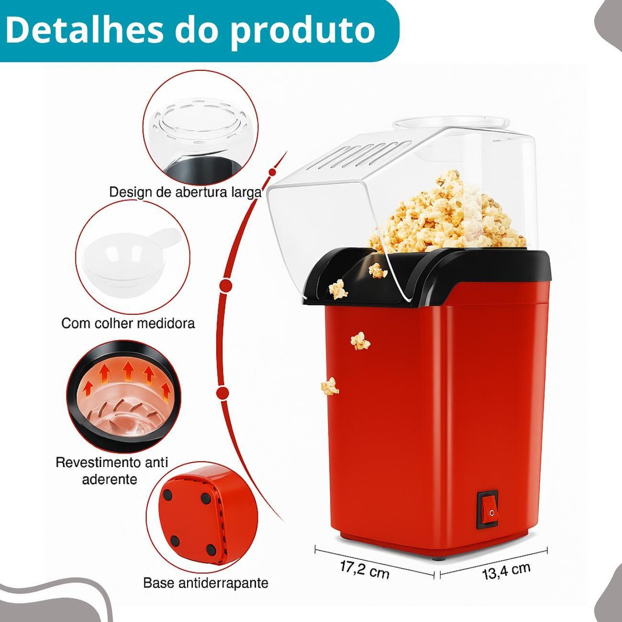 A Pipoqueira Elétrica Ar Quente É A Solução Perfeita Para Quem Busca Praticidade, Saúde E Sabor Estoure Pipoca De Forma Rápida E Sem Óleo, Garantindo Um Lanche Leve E Crocante. Compacta E Eficiente, Ela Combina Com Qualquer Cozinha E Transforma Seus Momentos Com A Família E Amigos Em Algo Especial. Com Design Moderno E Tampa Dosadora Multifuncional, Você Pode Preparar Pipoca E Derreter