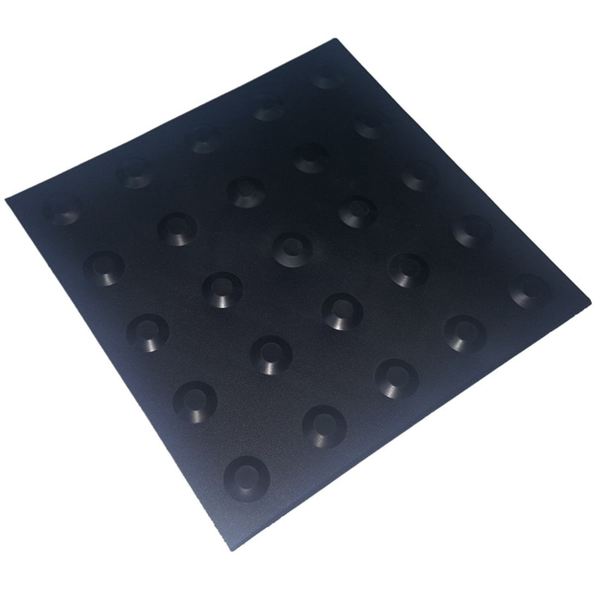 Piso tátil Alerta Preto 25x25cm..O piso tátil de alerta no piso deve ser utilizada para:.¿a) informar à pessoa com deficiência visual sobre a existência de desníveis ou situações de risco.permanente, como objetos suspensos não detectáveis pela bengala longa,.¿b) orientar o posicionamento adequado da pessoa com defciência visual para o uso de equipamentos, como elevadores, equipamentos de autoatendimento ou serviços,.¿c) informar as mudanças de direção ou opções de percursos,.¿d) indicar o início e o término de degraus, escadas e rampas,.¿e) indicar a existência de patamares nas escadas e rampas,.¿f) indicar as travessias de pedestres..Conforme NBR 9050. Composição: 100% PVC flexível. Dimensões: 25x25cm. Espessura: 5 mm (2mm de base e 3mm de relevo). Fixação com cola de contato. Caixa com 16 pçs (1m²)..A compra de 1 (uma) unidade equivale a 1m² (16pçs)