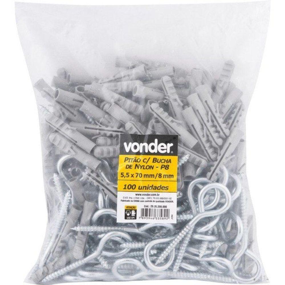 Pitão 5,5x70mm Zincado Com Bucha 8mm P-8 Com 100 Peças Vonderconteúdo Da Embalagem100 Pitões Com Buchas De Nylonaplicações E Dicas De Usoindicado Para A Fixação Em Alvenaria E Concreto Como Suporte Para Os Mais Variados Objetos. Utilizar Bucha Com Diâmetro De 8 Mm.destaques E Diferenciaispossui Acabamento Zincado Que Aumenta A Proteção Contra Oxidação/corrosãodetalhes Técnicosmaterial Do Pitão:aço Carbonoacabamento Do Pitão:zincadodiâmetro Do Pitão:5,5 Mmcomprimento Do Pitão:70,0 Mm Produto: Pitão | Tipo De Bucha: Universal