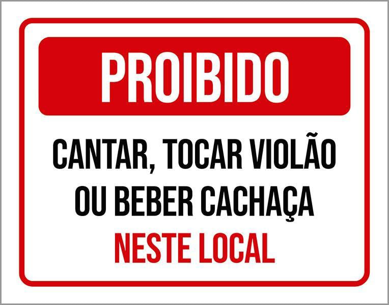 Placa De Proibido Cantar Tocar Violão Beber Cachaça 27x35