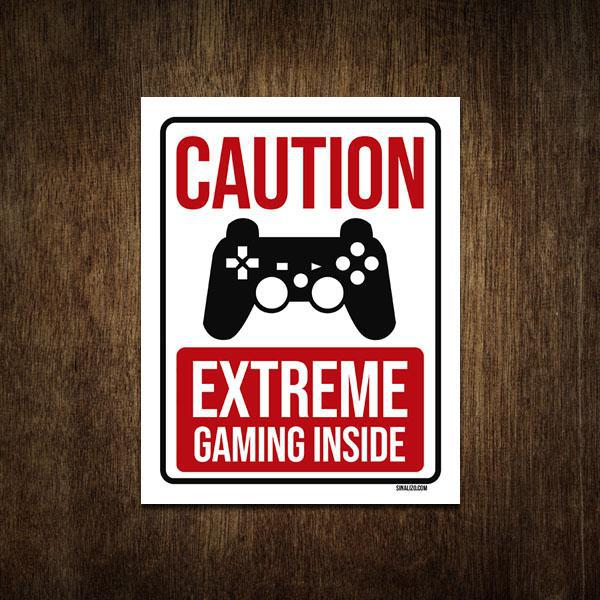 Placa Decorativa - Caution Extreme Gaming Inside Ps 18x23