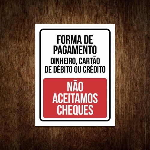 Placa Forma De Pagamento Não Aceitamos Cheques