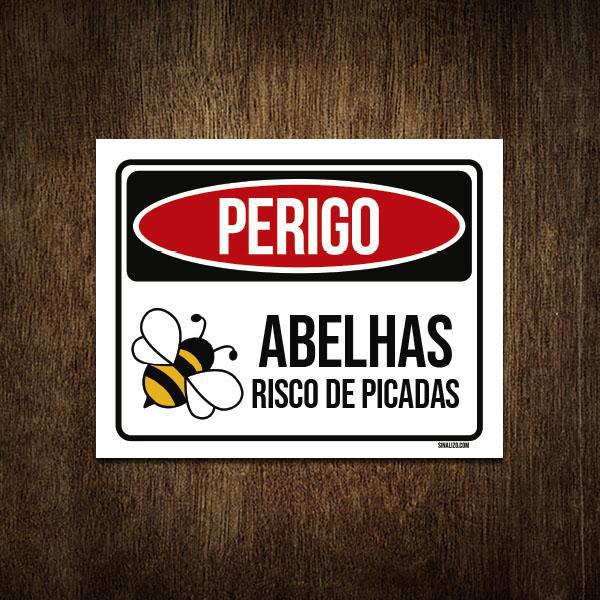 Placa Perigo - Abelhas Risco De Picadas 18x23
