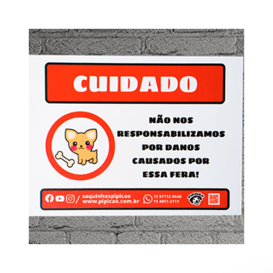 Placa Pipicão Divertida Cuidado
