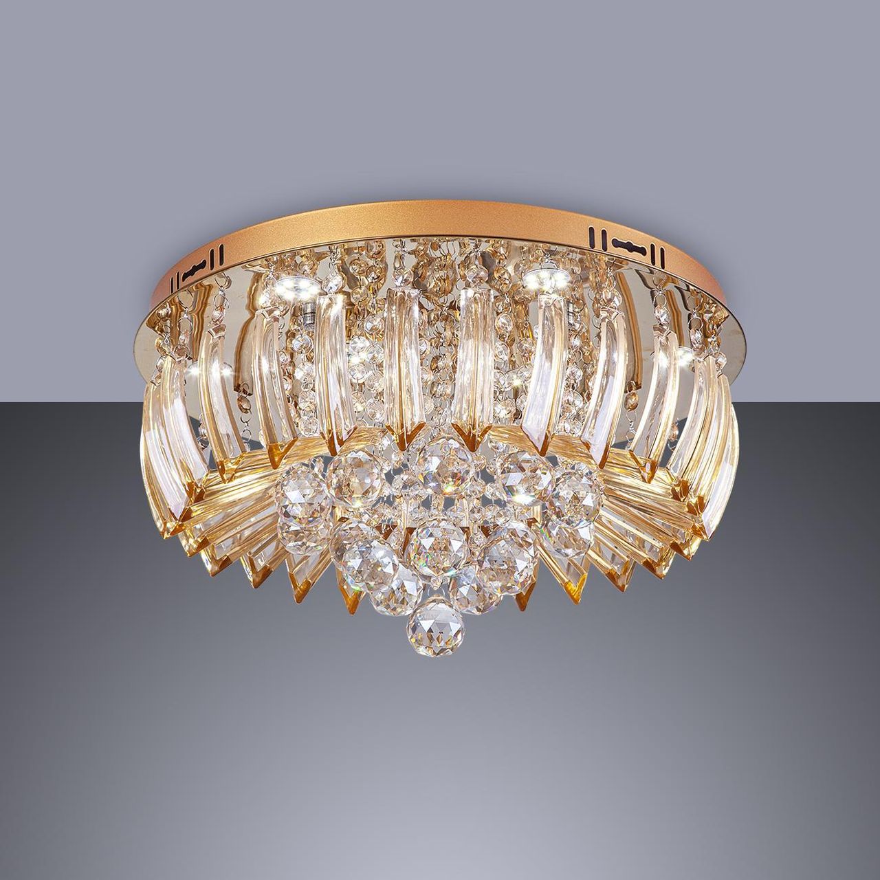 Plafon Sobrepor Led Cristal E Acrílico Greta 45cm 24w Dourado Esquilos Shop