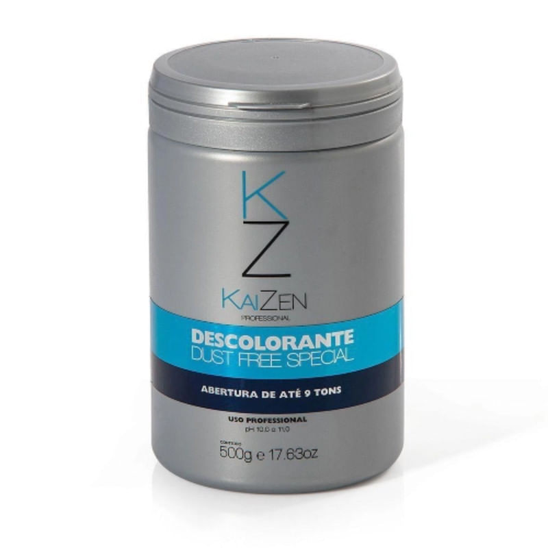 Contém: 1 pó Descolorante Kaizen 500gr Descrição Descolorante Dust Free Special, A Associação De Um Blend De Ativos De Última Geração Que Além De Cuidar Da Estrutura Dos Fios, Da Maciez, Brilho E Mantém A Elasticidade Natural Dos Fios. Indicado Para Descoloração, Reflexos, Mechas, Ballaiagens, Etc. Proporciona Um Clareamento Rápido E Uniforme. Suas Nanopartículas De Pigmento Azul/violeta Eliminam O Tom Indesejado Deixado Pelo Processo De Descoloração Convencional. Preparo: Em Um Recipiente Não Metálico Misture Na Proporão De 1 (uma) Medida De Pó Descolorante Para 2 (duas) Medidas De Agua Oxigenada Na Volumagem Adequada Para Ténica Escolhida E Misture De 2 A 3 Minutos Até Obter Uma Consistência Homogenia E Cremosa. Modo De Usar: Aplique A Mistura Com Um Pincel E Use Luvas Adequadas. Faça Uma Prova De Toque Antes De Aplicar O Produto. O Tempo De Aão Deverá Ser Controlado Pelo Profissional Em Função Do Grau De Clareamento Desejado. Após O Tempo De Pausa Enxaguar Com Água Morna E Shampoo.