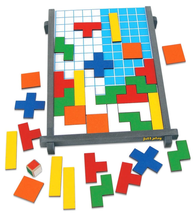 Jogo Poliminós Tabuleiro Mede 24x16cm Em Madeira. acompanha 90 Peças Coloridas Em Mdf E 1 Dado. ce-bri/icepex - N 00928-96