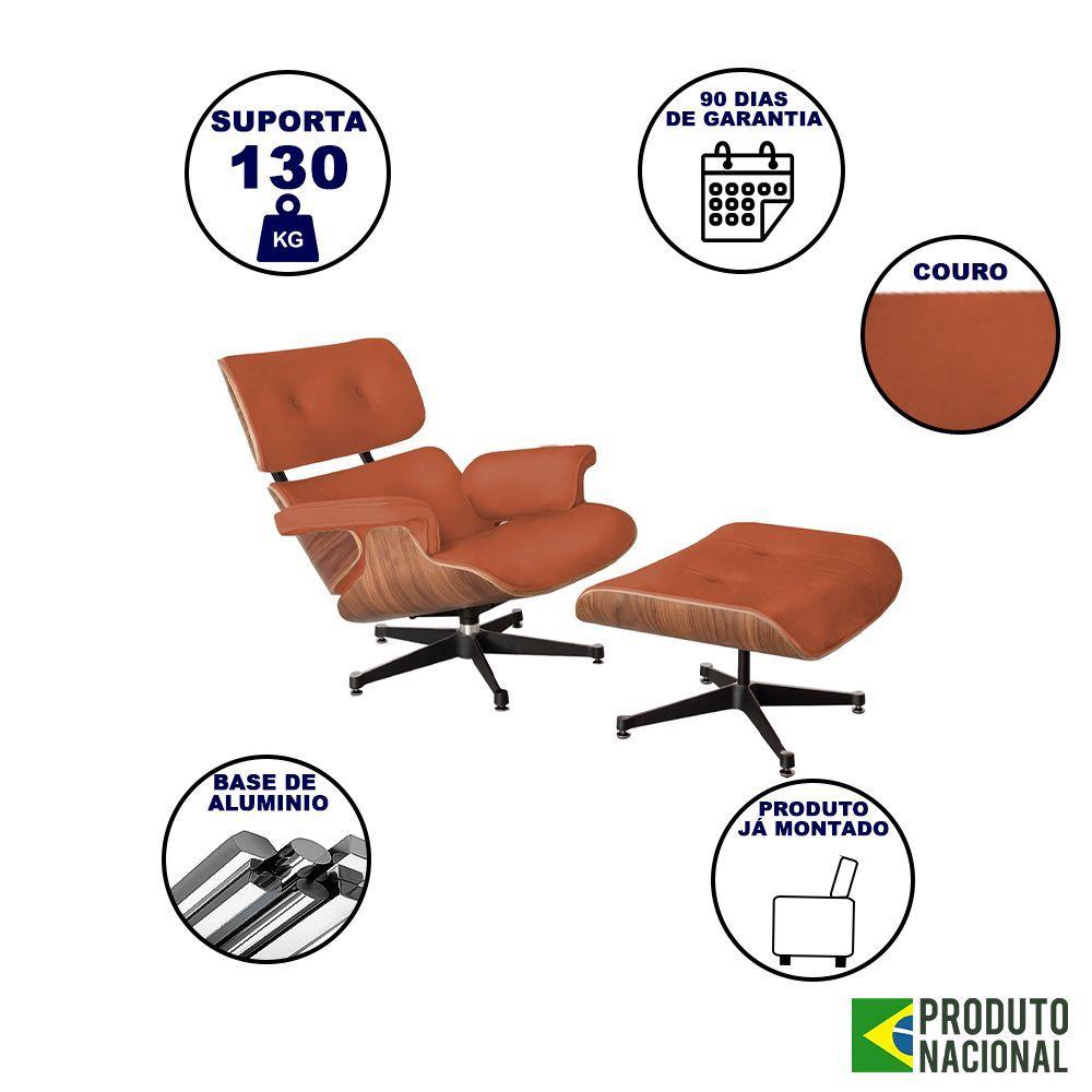 Poltrona Charles Eames Premium Com Puff Couro Caramelo