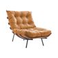 Poltrona Costela com Puff Couro Natural Legítimo Caramelo