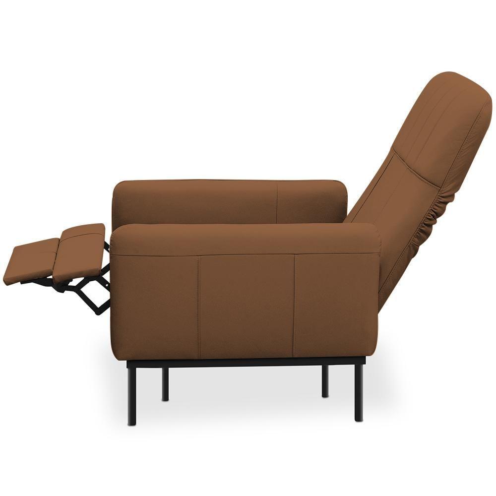 Poltrona Decorativa Fixa Retrátil Reclinável Lutor L06 Couro Caramelo - Lyam Decorconheça A Poltrona Fixa Lutor, Da Lyam Decor, O Estofado Que Vai Transformar Qualquer Ambiente Da Sua Casa! Com Um Design Moderno E Elegante, Essa Peça É Perfeita Para Compor Sua Sala De Estar, Quarto Ou Até Mesmo Aquele Cantinho Especial De Leitura. Seu Encosto Dobrável E Reclinável Proporciona O Conforto Que Você Precisa, Enquanto O Apoio De Pés Retrátil Garante Momentos De Relaxamento Absoluto. Revestida Em Couro De Alta Qualidade E Tapeçaria Com Espuma De Alta Densidade, Essa Poltrona Reclinável Não É Apenas Um Convite Ao Descanso, Mas Também Uma Adição Sofisticada À Sua Decoração. Os Pés Metálicos Conferem Um Toque Contemporâneo E Robustez À Peça, Assegurando Durabilidade E Estilo. Então, Invista Em Conforto E Beleza Com Essa Poltrona Decorativa ? Um Verdadeiro Destaque Para Diversos Ambientes Da Sua Casa! Dimensões Da Poltrona (l X A X P) 80 X 72 X 78 Cmmedidas Internas: Altura Do Encosto: 35 Cm Altura Do Encosto Aberto: 70 Cm Largura Do Encosto: 62 Cm Profundidade Do Assento: 43 Cm Largura Do Assento: 62 Cm Altura Do Chão Ao Assento: 52 Cm Profundidade Total Aberta: 142 Cm Altura Total Aberta: 107 Cmcaracterísticas: Estrutura Em Madeira De Eucalipto Tratada E Aparelhada Com Reforços, Cantoneiras E Chapas Em Mdf E Aço. Revestimento Em Tecido Couro De Alta Qualidade Na Tonalidade Caramelo. Encosto Dobrável E Reclinável Composto Por Espuma Soft. Assento Fixo Composto Por Espuma D-26 Com Apoio De Pés Retrátil. Percintas Elásticas Para Maior Resistência E Durabilidade. Braços Tapeçados Com Espuma D-20. Pés Fixo Em Aço. Peso Suportado: Até 120 Kg.- Nunca Sentar Nos Braços Ou Encosto Do Produto. - Por Se Tratar De Estofado As Medidas Podem Ter Uma Pequena Variação De Até 3 Cm. - A Tonalidade Do Produto Real Poderá Ter Ligeira Variação Devido O Lote De Tecidos. - Indicado Para Uso Residencial, Sua Limpeza Deve Ser Feita Com Pano Levemente Umedecido Em Água Limpa, Sem Esfregar, Não Utilizar Produtos Abrasivos, Desengordurantes, Álcool Ou Solvente.observações Importantes: - Produto Para Uso Residencial Em Ambiente Interno, Não Devendo Ficar Exposto Diretamente Ao Sol, Calor E Umidade Excessivos. - Pode Haver Alguma Diferença De Tonalidade Entre A Imagem E O Produto Real, Por Conta Do Tratamento De Imagens E A Calibração De Cores Do Seu Monitor. - As Imagens São Meramente Ilustrativas, Não Acompanham Objetos De Decoração E Eletrônicos. - Ao Receber A Mercadoria, O Cliente Deve Verificar As Condições Da Embalagem, Caso Haja Alguma Avaria Não Assine O Comprovante De Recebimento E Entre Em Contato Com Nossa Loja Para Orientações. - Montagem, Desmontagem E Outras Instalações Serão De Responsabilidade Do Cliente. Não Nos Responsabilizamos, No Ato Da Entrega, Por Subir Escadas/elevadores Ou Pelo Transporte Por Guincho Em Apartamentos. Eventuais Despesas São De Responsabilidade Do Comprador. - Confira As Dimensões Do Produto E Certifique-se De Que Passará Normalmente Por Supostos Elevadores, Portas, Escadas E/ou Corredores De Sua Residência. - Para Mais Informações, Acesse Nossa Central De Atendimento. Na
