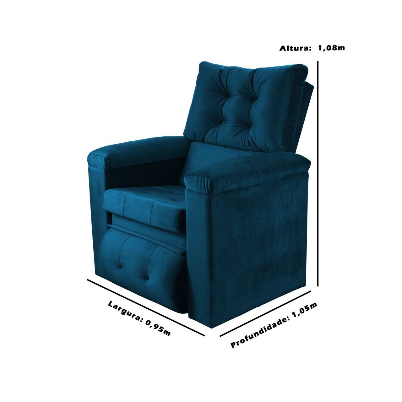 Estilo: Clássico | Peso (kg): 40 | Garantia: 03 Meses | Altura (cm): 108 | Estampado: Não | Extensível: Não | Largura (cm): 95 | Possui Pés: Não | Acompanha Puff: Não | Suporta Até (kg): 120 | Design Assinado: Não | Profundidade (cm): 105 | Tipo De Assento: Regulável | Tipo De Encosto: Regulável | Tipo De Poltrona: Do Papai | Altura Do Encosto: 75 | Origem Do Produto: Nacional | Ambiente Principal: Sala De Estar | Firmeza Do Assento: Macio | Modelo De Poltrona: Reclinável | Almofada Do Assento: Fixa | Almofada Do Encosto: Fixa | Enchimento Do Braço: Fibra Siliconada | Tecido Predominante: Veludo | Enchimento Do Assento: Espuma D-28 | Enchimento Do Encosto: Fibra Siliconada | Encosto Para A Cabeça: Sim | Possui Apoio Para Braços: Sim | Serviço Impermeabilização: 102610509 | Tipo De Espuma Do Assento: Fibra Siliconada | Tipo De Espuma Do Encosto: Fibra Siliconada | Acompanha Almofadas Extras: Não | Possui Percintas Elásticas: Sim | Altura Do Assento Até O Chão: 55 | Informações Complementares (novo): 140cm Quando Estendida | Fabricante: Cia Do Estofado | Marca: Cia Do Estofado | Cor: Azul | Cor Do Produto: Azul | Itens Inclusos: 1 Poltrona | Cor Predominante: Azul | Linha Ou Coleção: Sara