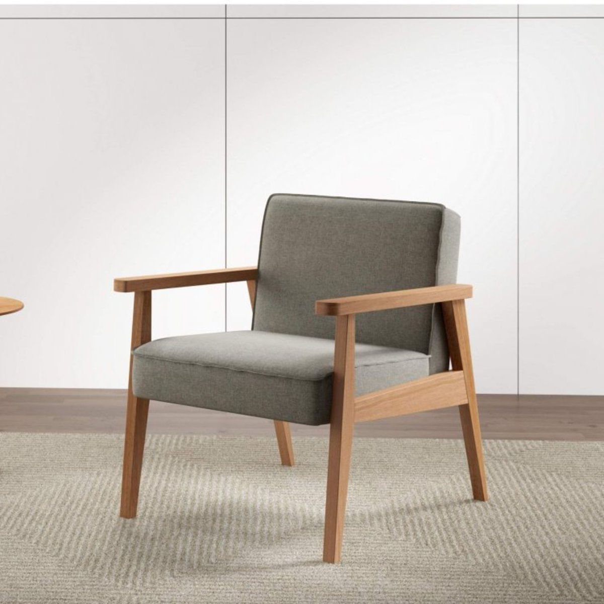 Poltrona estofada revestida com tecido de alta qualidade, assento com persintas elásticas, espuma de densidade 26, pés em madeira de lei jequitibá. Uma poltrona que se destaca em qualquer ambiente, deixando-o muito estiloso e aconchegante.
