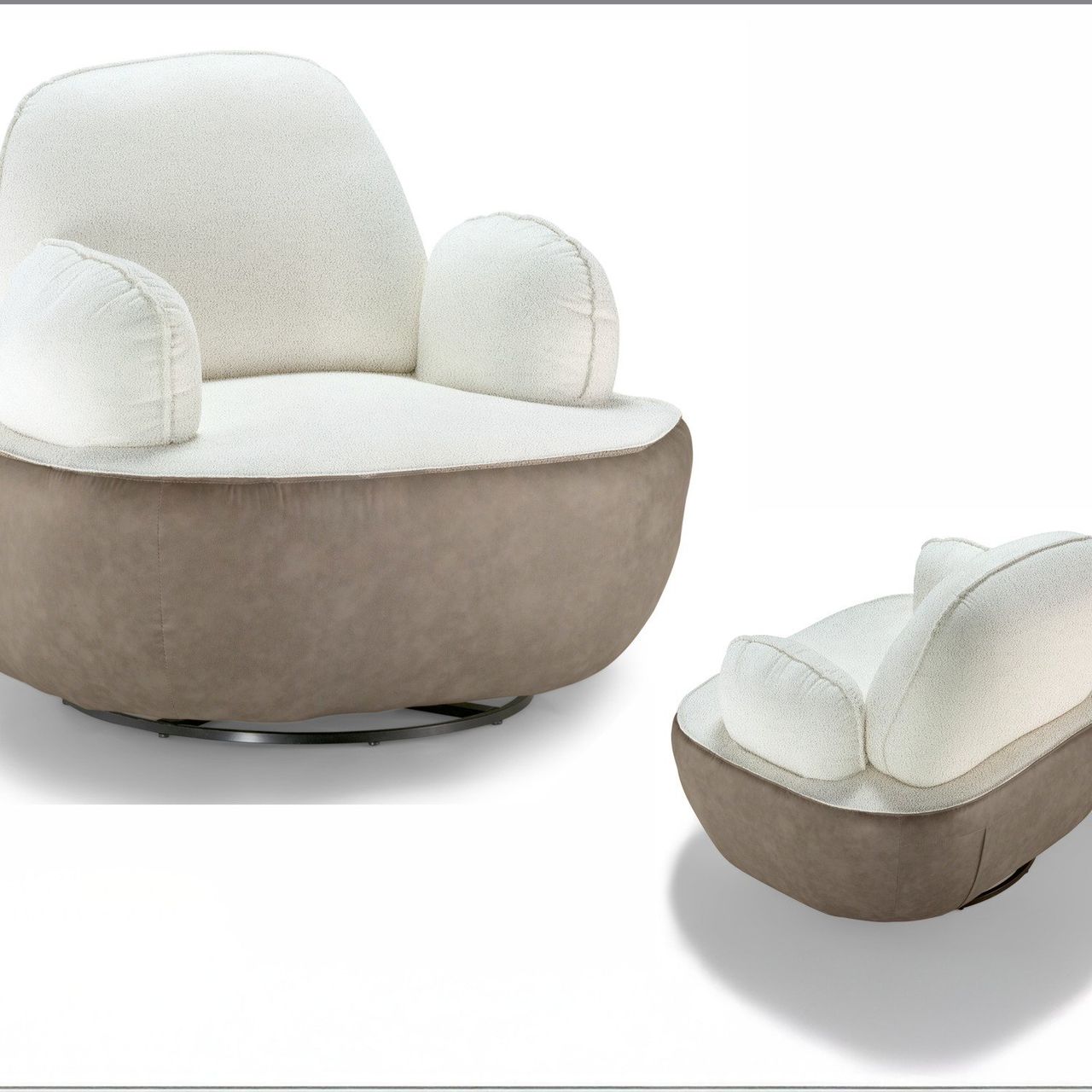 Poltrona Vênus Com Detalhes Em Couro 503 E Tecido Boucle 508. Estrutura Em Eucalipto, Base Giratória, Encosto Em D23 Softy E Assento Em D26. Medidas: Altura 90cm, Largura 102cm, Profundidade 84cm. Design Elegante E Conforto, Ideal Para Ambientes Sofisticados.