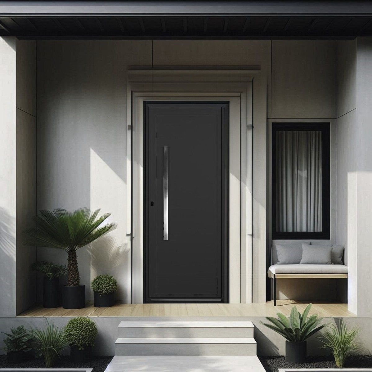 Porta De Aluminio Lambril 210x80cm Com Puxador Project Preto.