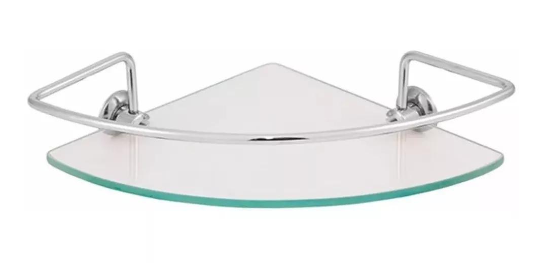 Porta Shampoo Canto Simples - Transparente características: tamanho: 21x21 Cm vidro: 6 Mm material Da Grade: Alumínio acompanha Buchas E Parafusos