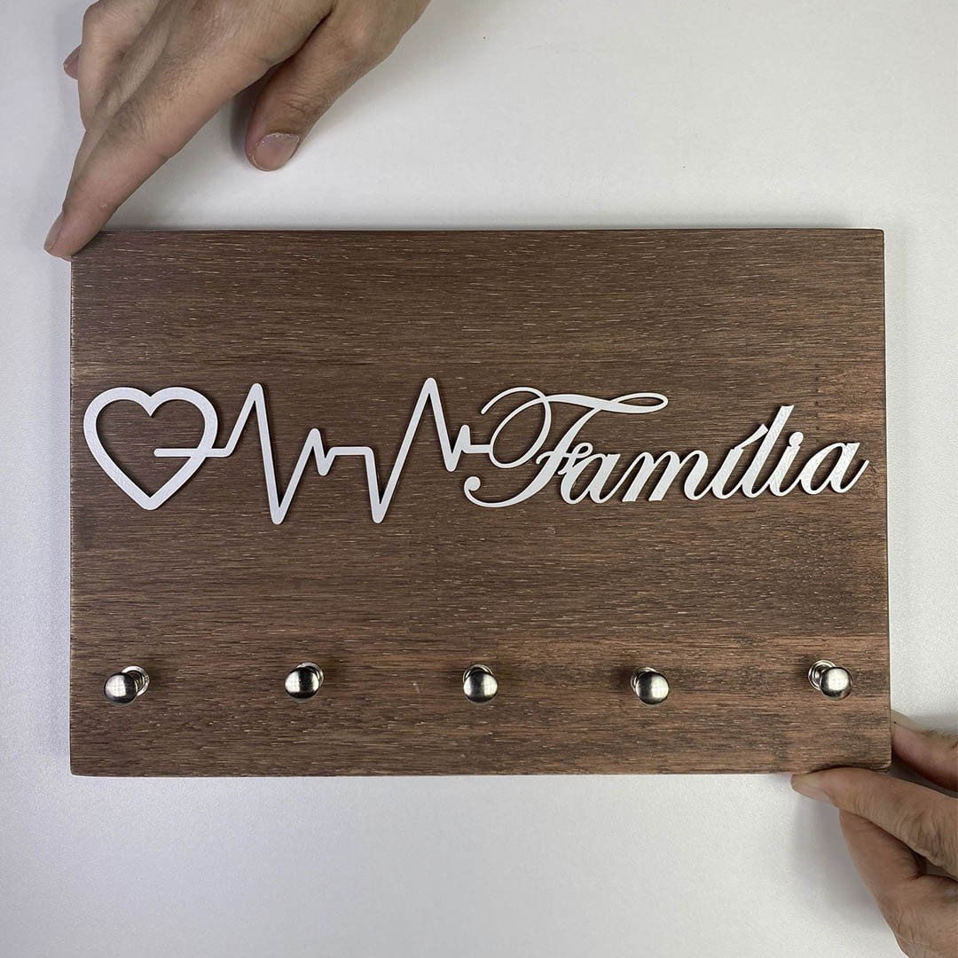 Porta Chaves Artesanal Rústico Família 25cm X 20cm - características Gerais Do Produto: Dimensões: 25cm X 20cm Cor Da Peça: Marrom Espessura: 18mm Material: Mdf Cru Com Pintura Acompanha: Fita Dupla Face E Ganchos Em Metal garantia: 7 Dias