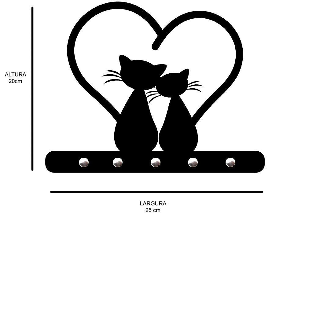Porta Chaves De Parede Casal Gato Coração Preto - características Gerais Do Produto: Dimensões: 25cm X 20cm Cor Da Peça: Preto / Branco Espessura: 6mm Material: Mdf Laminado Acompanha: Fita Dupla Face E Ganchos Em Metal garantia: 7 Dias