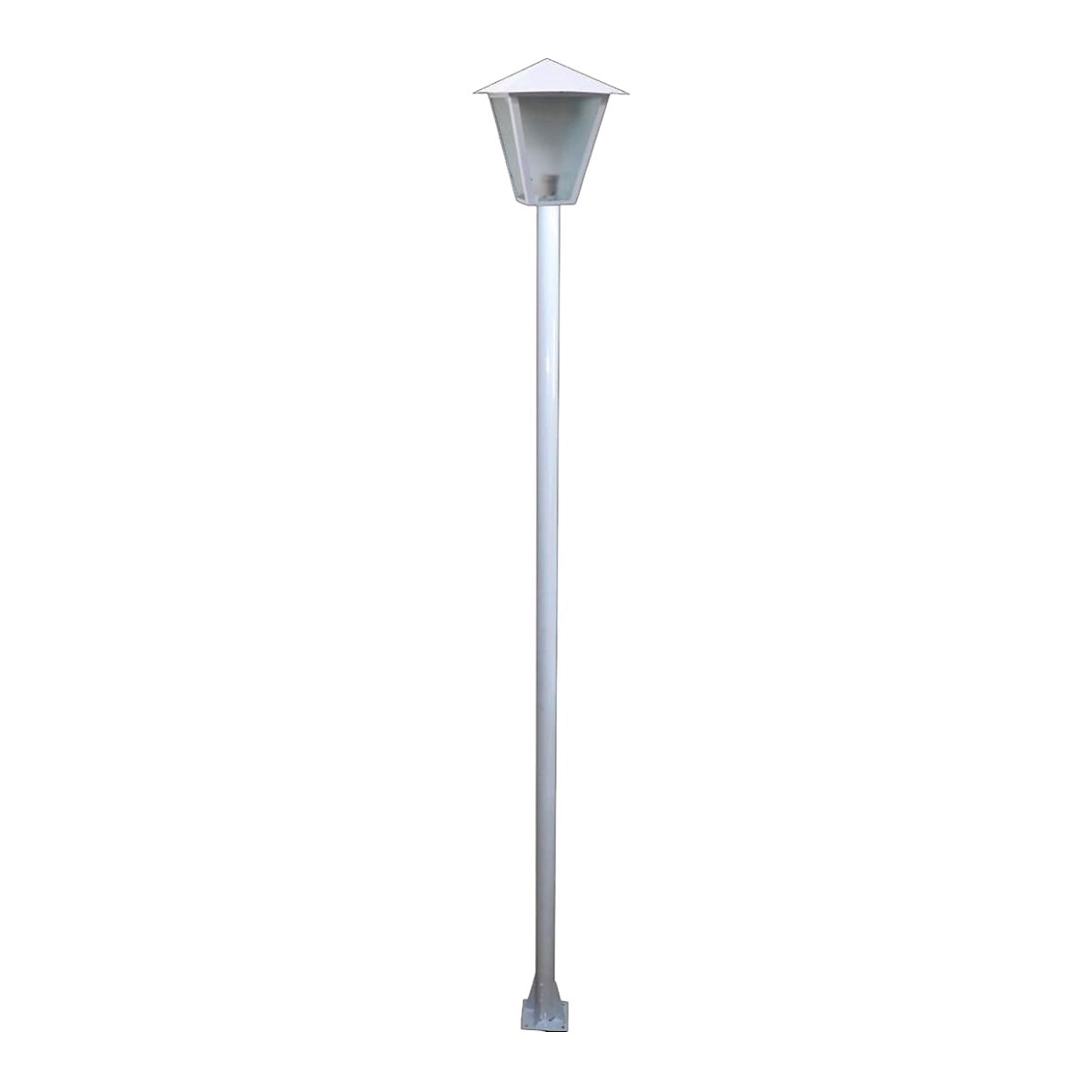 Especificações Técnicas: Largura Parte De Baixo Luminária: 10cm. Largura Parte De Cima Luminária: 24cm. Material: Tubo Em Aço Pintado. Altura Luminária: 38cm. Poste: 3,00mt. Cor: Branco.