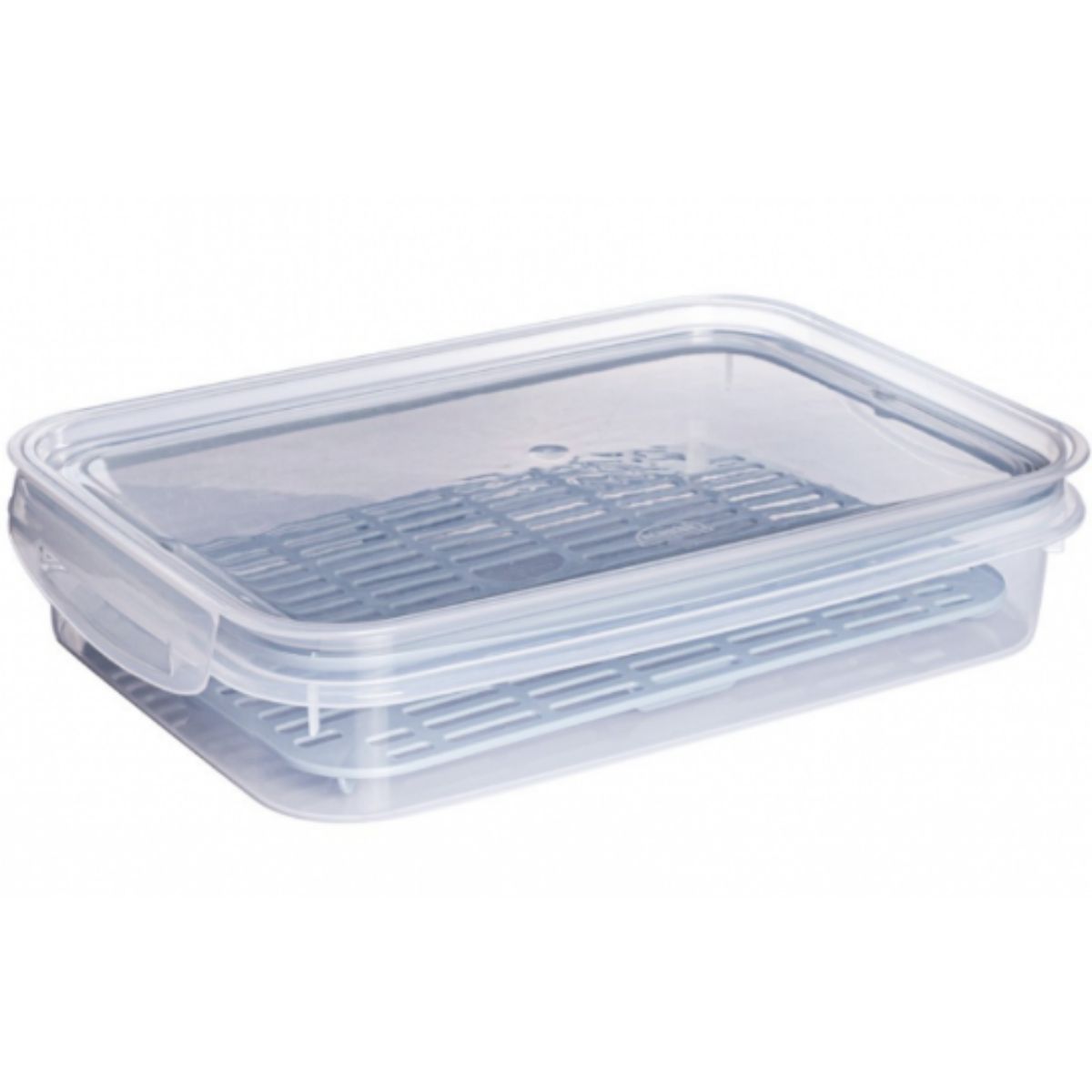 O Pote De Plástico Retangular conta com um escorredor e a vedação com borracha garante o fechamento hermético conservando seus alimentos.