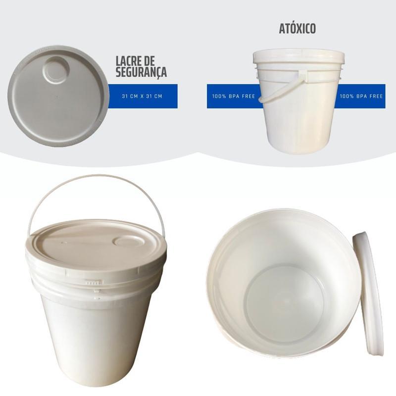Balde Plástico 20 Litros Com Tampa Lacre E Alça Plástica - 02 Peças