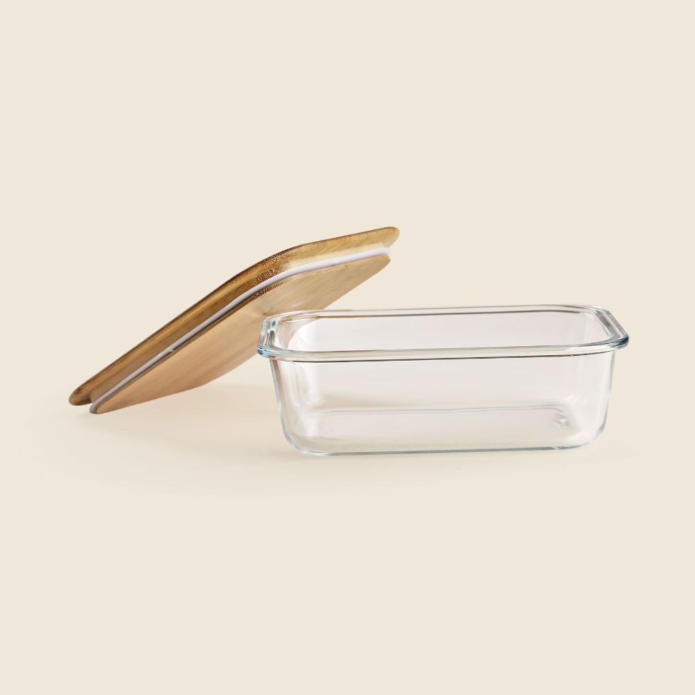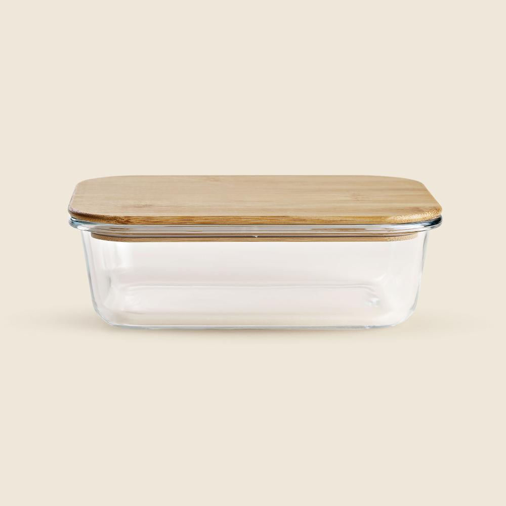 Pote Retangular Vidro E Bambu 1l - A\casa