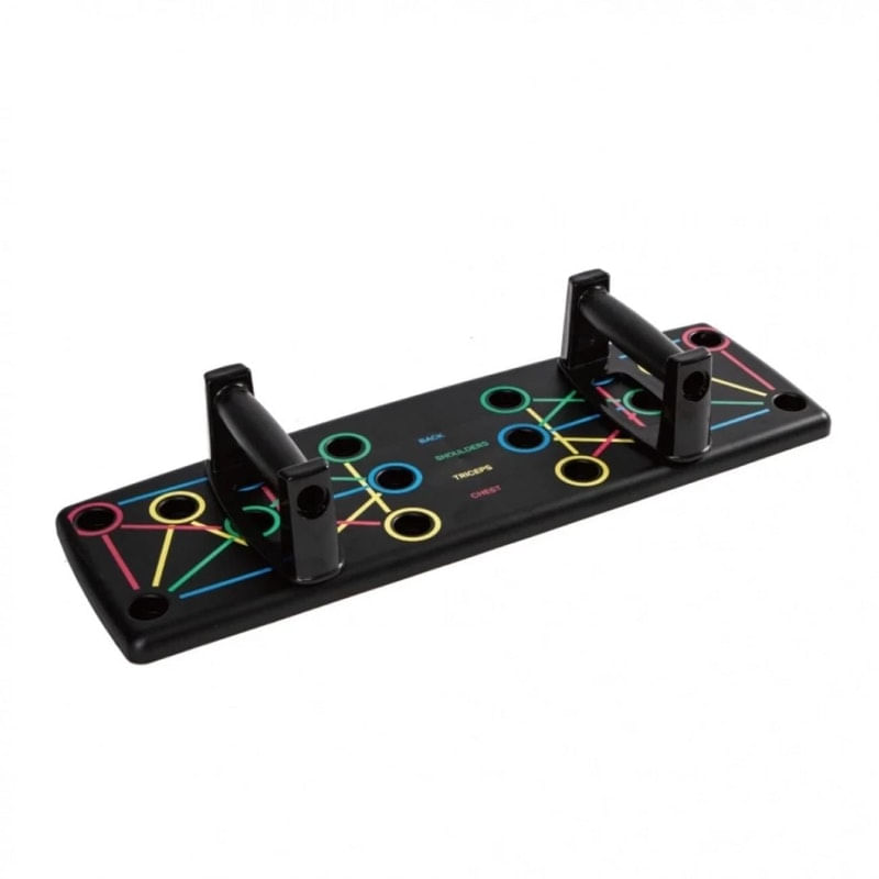 Prancha Para Flexão De Braço - Live Up..Descrição..Indicado para todos os níveis de usuários, o Suporte para Flexão Liveup garante a desenvoltura e flexibilidade dos membros superiores, bem como proporciona maior conforto e segurança durante as atividades. Confira os benefícios:.- Aumenta a amplitude do movimento de flexão potencializando os resultados,.- Proporciona intenso trabalho muscular da região peitoral, braços e ombros..- Trabalha com mais músculos do que os apoios de flexão padrões,.- Funciona em qualquer tipo de piso,.- Condicionamento corporal superior...Especificações..Confeccionado em material plástico. Tamanho único na cor preta, com aproximadamente 67 cm de largura. Base anti-derrapante. Suporta 120Kg de peso.
