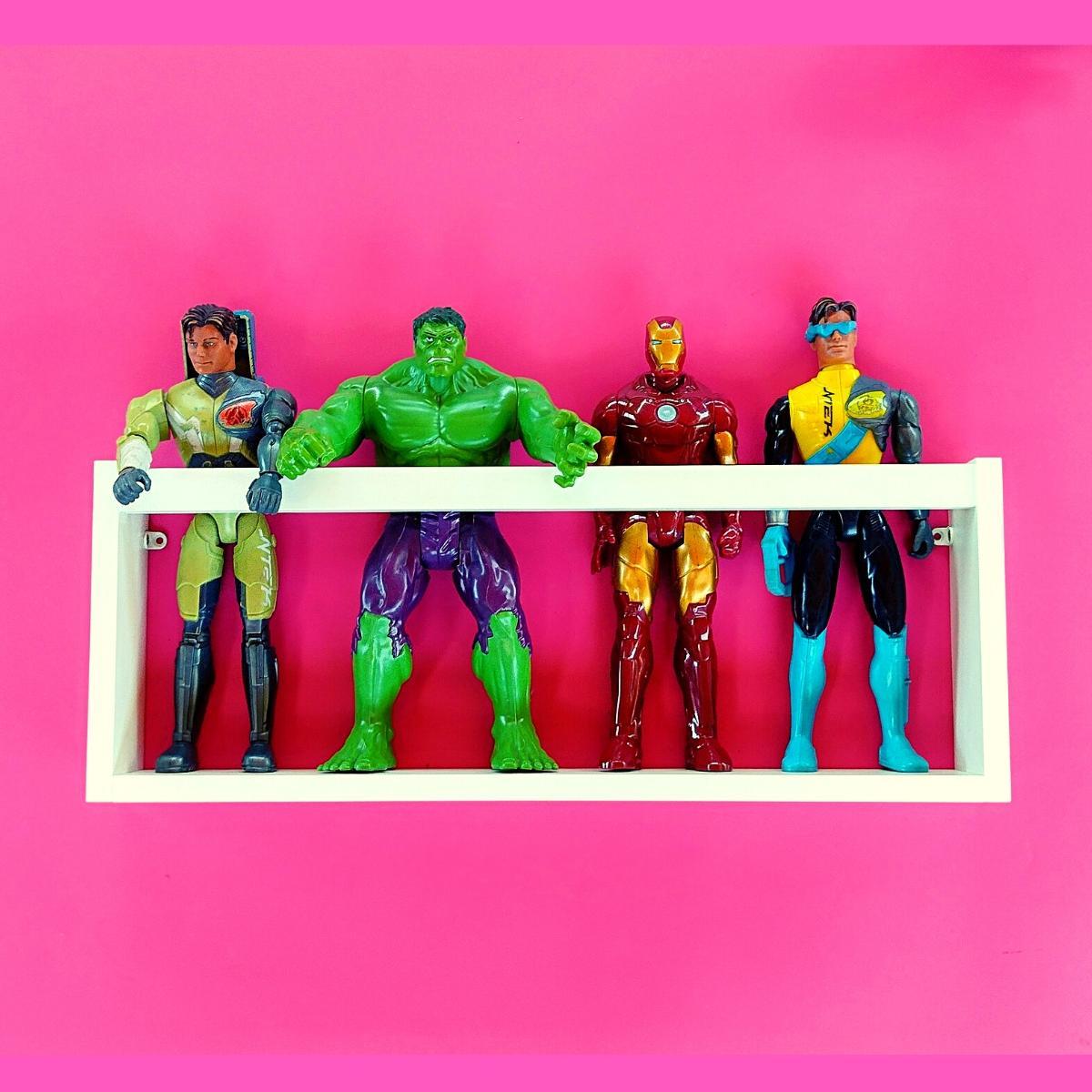 Prateleira Quarto Infantil Para Coleção De Bonecos Marvel Bonecas Bárbie 4un 55cm