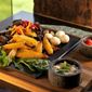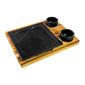Itens Inclusos: 01 Prato Com 02 Molheiras Em Pedra Sabão E Suporte P 20x20cm.