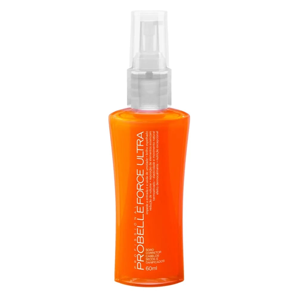 Soro Corretor Force-Ultra da Probelle possui fórmula termoativada com máxima proteção contra os danos das altas temperaturas da prancha alisadora. Devolve elasticidade e movimento natural. Ação anti umidade impedindo a entrada e a saída de umidade. Brilho espelhado com reposição de elementos essenciais e efeito dermocalmante.
