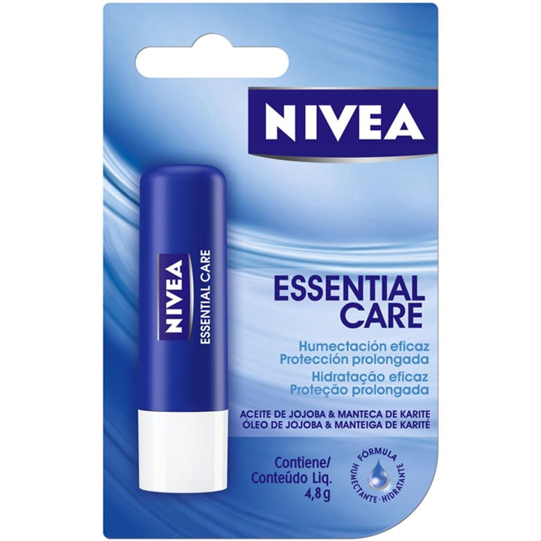 protetor Labial Nivea Essential Care Proporciona Hidratação E Proteção Prolongada. Enriquecida Com Hydra Qi E Manteiga De Karité Protege Os Lábios Contra O Ressecamento, Mantendo-os Hidratados, Saudáveis E Macios.