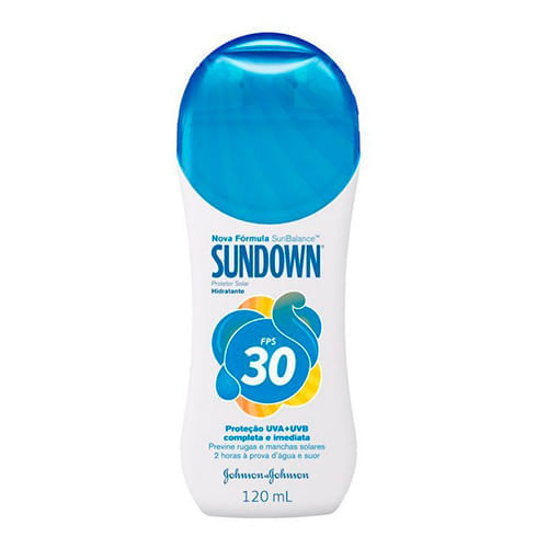 Proteção completa para curtir a vida ao ar livre. UVA+UVB balanceado. Resistente à água por 2 horas. Hidratação prolongada. Fotoestável: mesma proteção durante todo o tempo de exposição ao sol. Dermatologicamente testado. Previne o envelhecimento precoce...Indicado.Para pessoas com pele extremamente sensível ao sol, pois oferece muito alta proteção contra queimaduras solares...Modo de Usar:.Aplicar generosamente sobre a pele antes da exposição ao sol e sempre que necessário. Reaplicar após nadar, secar-se com toalha, sudorese intensa ou tempo de exposição prolongado ao sol...Sobre a Marca:.Sundown te permite aproveitar tudo o que a vida ao ar livre pode proporcionar. São diferentes linhas, tamanhos de embalagens e fatores de proteção que atendem a toda família. Sundown é feito para você aproveitar tudo que o sol tem a oferecer. No parque, na praia, na rua ou praticando esportes Sundown é o protetor solar feito para a gente cuidar das pessoas que a gente gosta. Pra quem gosta de água, de areia, de jogar bola, de bicicleta, de caminhada. Pra quem gosta de manter a cor natural da pele ou deixá-la com uma corzinha saudável. Não importa de que modo você quer aproveitar o sol, a J&J se preocupa com todos os tipos de pele e está presente em todos os lugares.