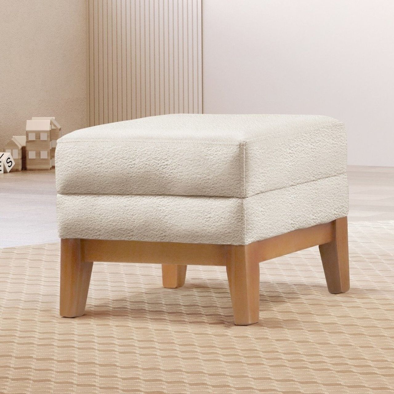 Puff Retangular Para Sala Áquila Estilosa Nude.