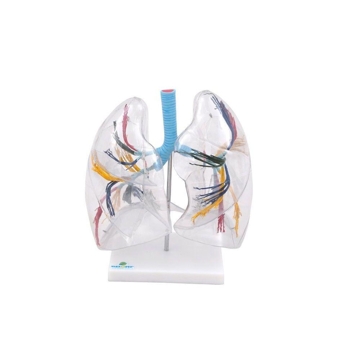 Pulmão Humano Transparente Anatomia Modelo anatômico de pulmão transparente, confeccionado em PVC, é um modelo que demonstra a estrutura interna dos pulmões, O Modelo SD-5055 apresenta as seguintes estruturas entre outras: * Traqueia (Cartilagens Traqueais, Ligamentos Anulares, Carina Da Traqueia, Músculo Traqueal), * Brônquios (Principal Direito, Principal Esquerdo, Brônquios Lobulares, Brônquios Segmentados), * Pulmões (Ápice, Face Esternocostal, Face Diafragmática, Lobo Superior, Lobo Médio, Lobo Inferior, Fissura Obliqua, Fissura Horizontal, Impressão Cardíaca, Lingula, Hilo), Montado em Base plástica. Acompanha: 01 Manual em português, 01 Termo de garantia. Embalagem: Caixa de isopor. Informação adicional Peso 1.150 kg Dimensões 20 x 32 x 36 cm Marca :SDORF -Referência :SD-5055 Garantia :1 Ano após o recebimento do produto