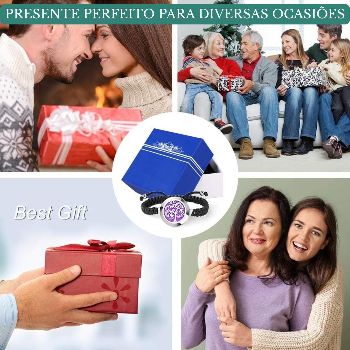 Elegante e funcional, esta pulseira transada com pingente de aço inoxidável de alta qualidade combina sofisticação com bem-estar. Seu design moderno inclui um pingente difusor em formato de Árvore da Vida, símbolo de equilíbrio, crescimento e energia vital.
