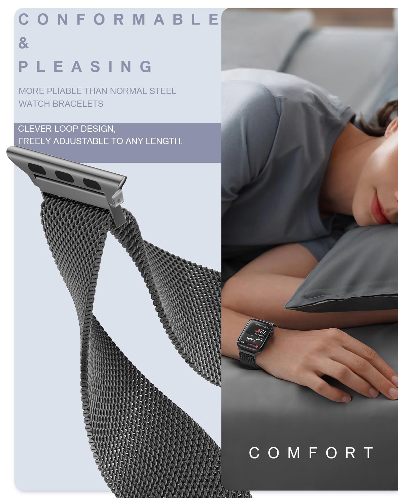 - 【respirável E À Prova De Suor】: As Pulseiras De Aço Inoxidável Brg Compatíveis Com Apple Watch Adotam Processo De Tecelagem Respirável De Aço Inoxidável, Não Irritam E Evitam Irritações Cutâneas. A Elegante Pulseira De Fivela De Malha De Aço Inoxidável É Adequada Para Qualquer Ocasião, Antiderrapante E À Prova De Suor.