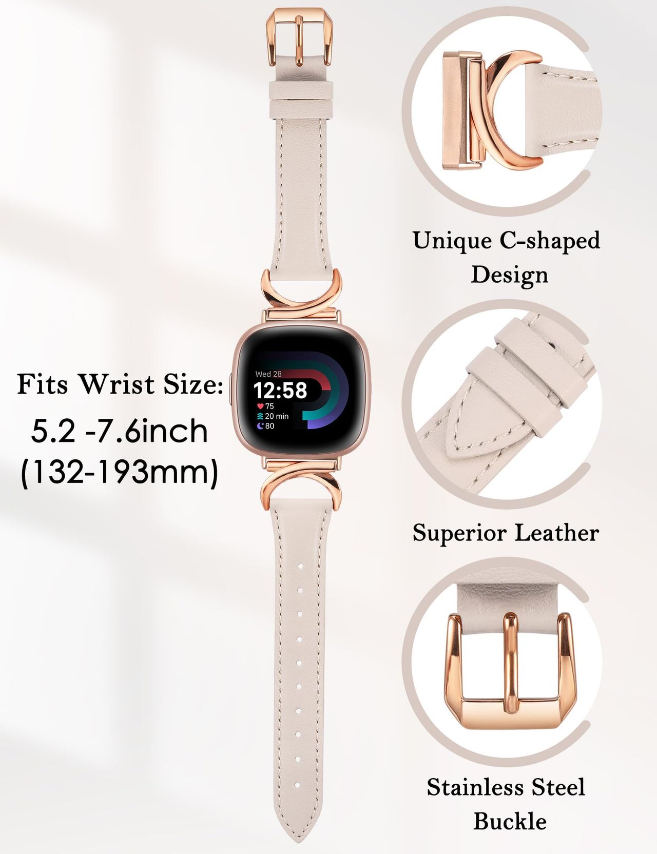 - Modelos Compatíveis: A Elegante Pulseira De Couro Fino Para Relógio É Compatível Apenas Com Os Smartwatches Fitbit Versa 4/fitbit Versa 3/fitbit Sense 2/fitbit Sense. Tamanho Único Para Pulsos De 132 Mm A 193 Mm. Observação: O Relógio Não Está Incluído
