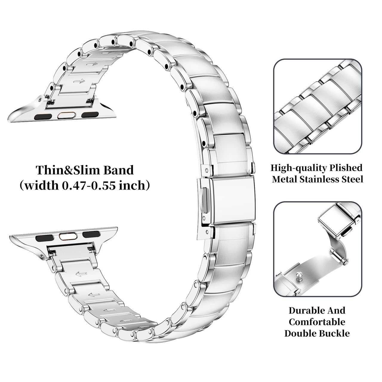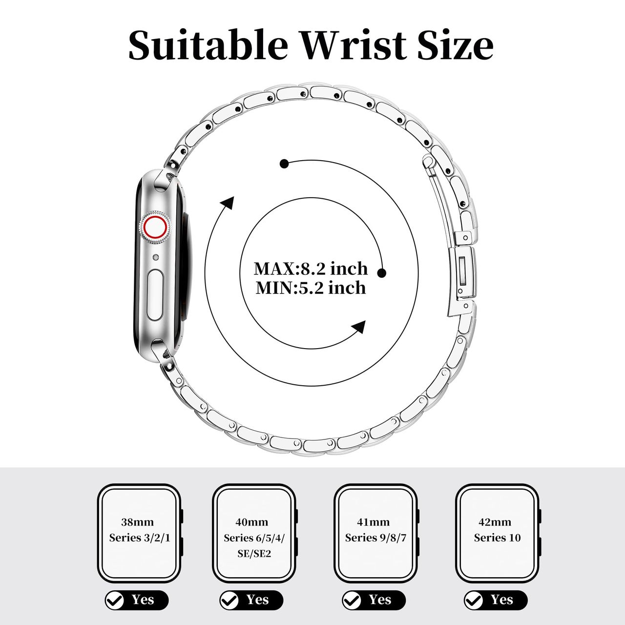 - Material Premium: Pulseira De Metal Para Apple Watch Feita De Aço Inoxidável De Alta Qualidade, Oferecendo Uma Ótima Mistura De Luxo, Conforto E Durabilidade Para Sua Pulseira Elegante. Pesa Apenas 60 G E Tem Apenas 3,65 Mm De Espessura, O Que A Torna Ultrafina E Durável. A Pulseira Iwatch Feminina Fica Ótima.