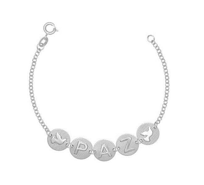 Pulseira Prata Berloque Paz Com 2 Espirito Santo