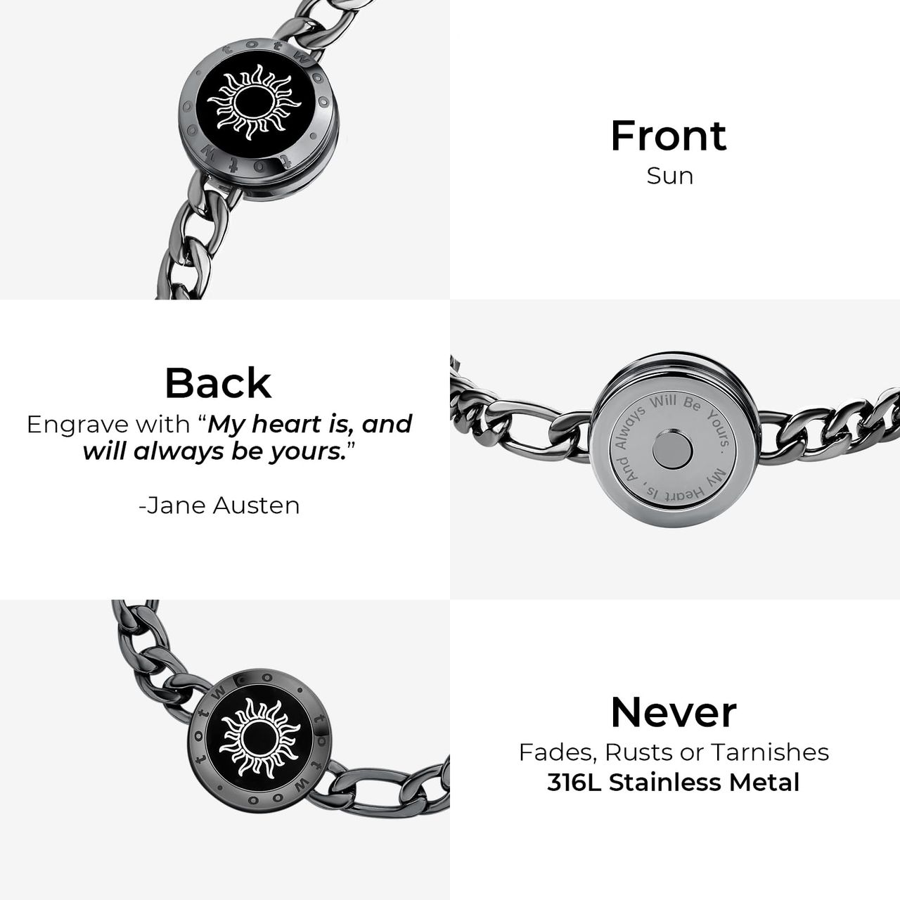 - [design Exclusivo] Pulseira Única Com Elemento Solar Clássico, Romântico E Moderno. As Costas Das Pulseiras São Gravadas Com A Citação De Jane Austen, "my Heart Is, And Will Always Be Your." Combine A Pulseira De Sol E Lua Livremente Em Seu Estilo.