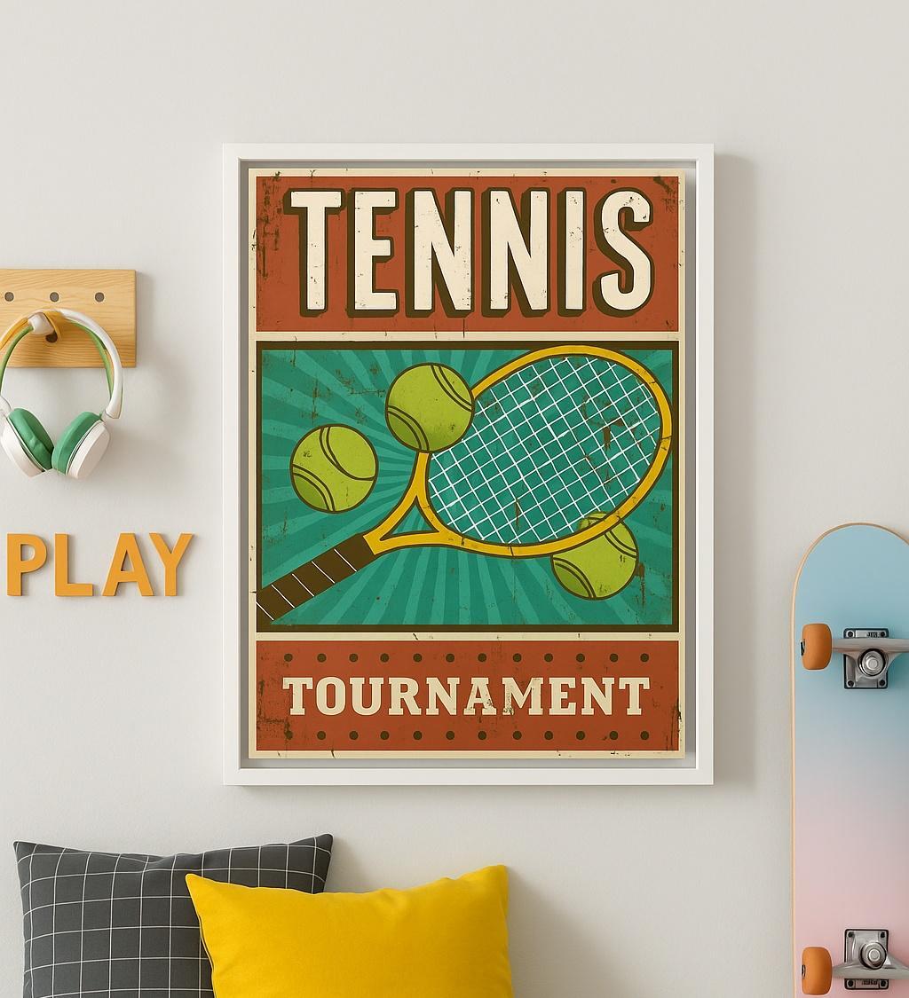 Quadro Canvas Esporte Tênis - Retrô-mold.branca