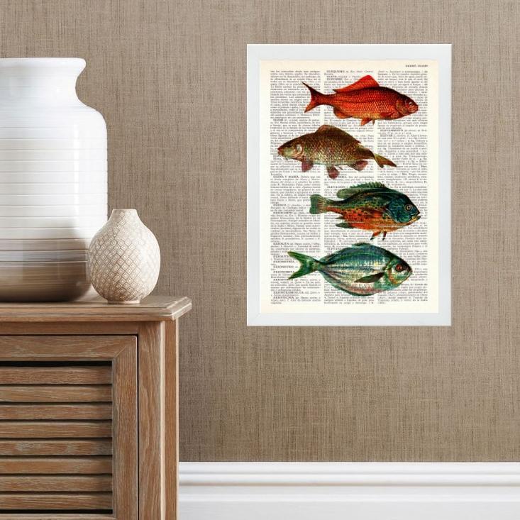 Quadro Casa De Praia- Peixes Coloridos 45x34cm - Com Vidro