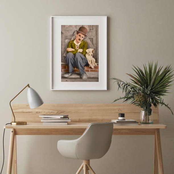 Quadro Charlie Chaplin Com Cachorro - 60x48cm