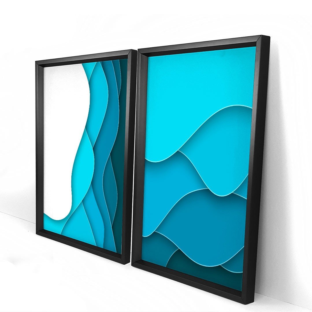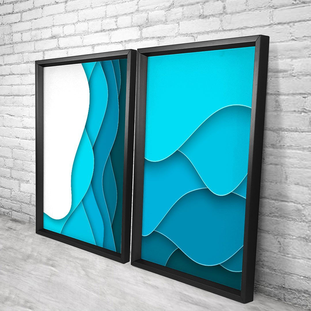 Quadro com Moldura Chanfrada Abstrato Azul Preto - Médio - ...Características Gerais do Produto:.. Tamanho dos Quadros: - Tamanho Grande 90x122cm (60x90cm cada Quadro), - Tamanho Médio 60x82cm (40x60cm cada Quadro). Acabamento: Acabamento Selado, Moldura. Tecido: 100% Nylon. Estampa: Digital de Alta Qualidade, Aplicado por Termotransferência. Conteúdo da Embalagem: Conjunto 2 Quadros Decorativos. Gênero: unissex. Faixa etária: Acima de 13 anos...Garantia:.. Garantia contra defeito de fabricação