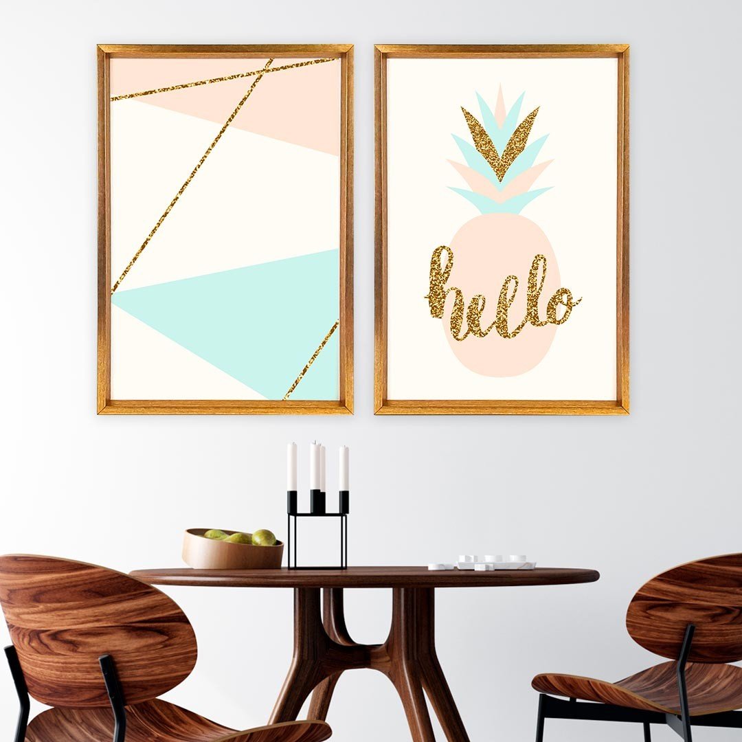 Quadro com Moldura Chanfrada Hello Dourado - Grande - ...Características Gerais do Produto:.. Tamanho dos Quadros: - Tamanho Grande 90x122cm (60x90cm cada Quadro), - Tamanho Médio 60x82cm (40x60cm cada Quadro). Acabamento: Acabamento Selado, Moldura. Tecido: 100% Nylon. Estampa: Digital de Alta Qualidade, Aplicado por Termotransferência. Conteúdo da Embalagem: Conjunto 2 Quadros Decorativos. Gênero: unissex. Faixa etária: Acima de 13 anos...Garantia:.. Garantia contra defeito de fabricação