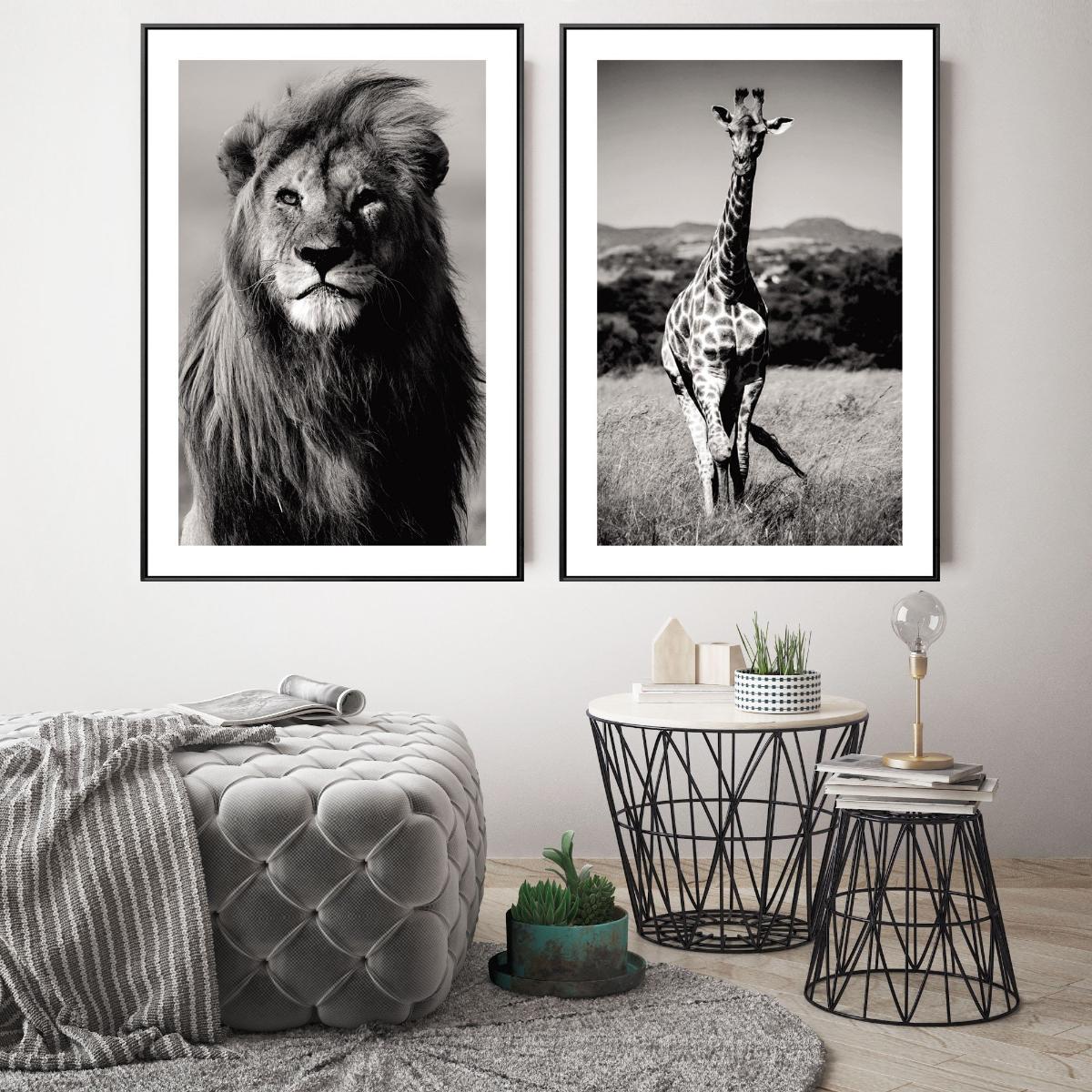 Quadro com Moldura Chanfrada Leão e Girafa Médio - ...Características Gerais do Produto:.. Acabamento: Acabamento Selado, Moldura. Tecido: 100% Nylon. Estampa: Digital de Alta Qualidade, Alta Resolução. Conteúdo da Embalagem: 2 Quadros com Moldura. Gênero: unissex. Faixa etária: Acima de 13 anos..Acompanha o produto:.. Quadro com Moldura