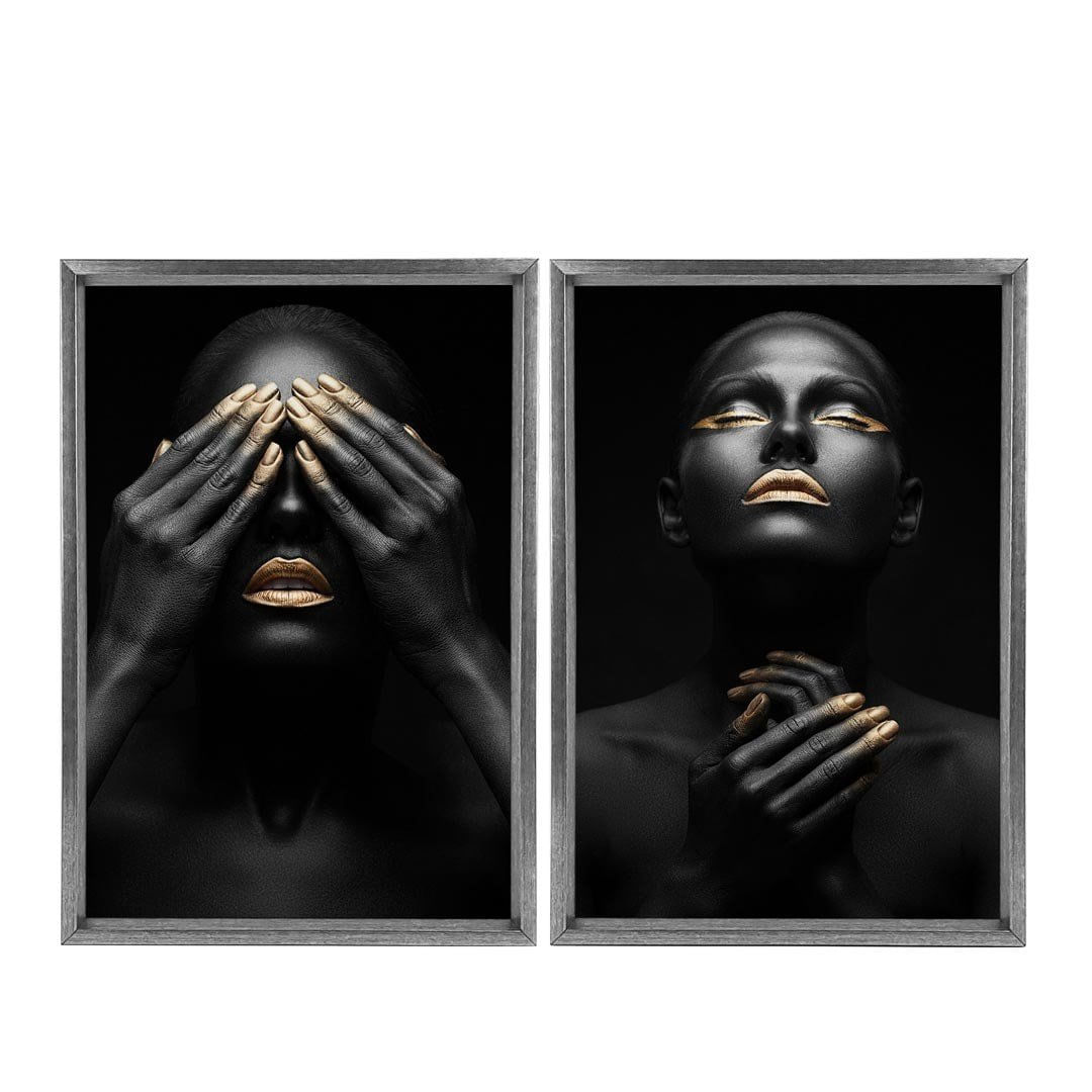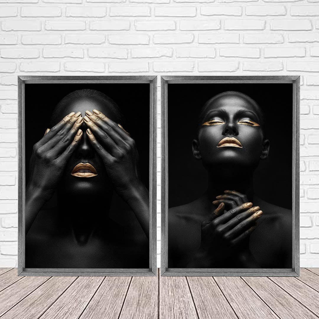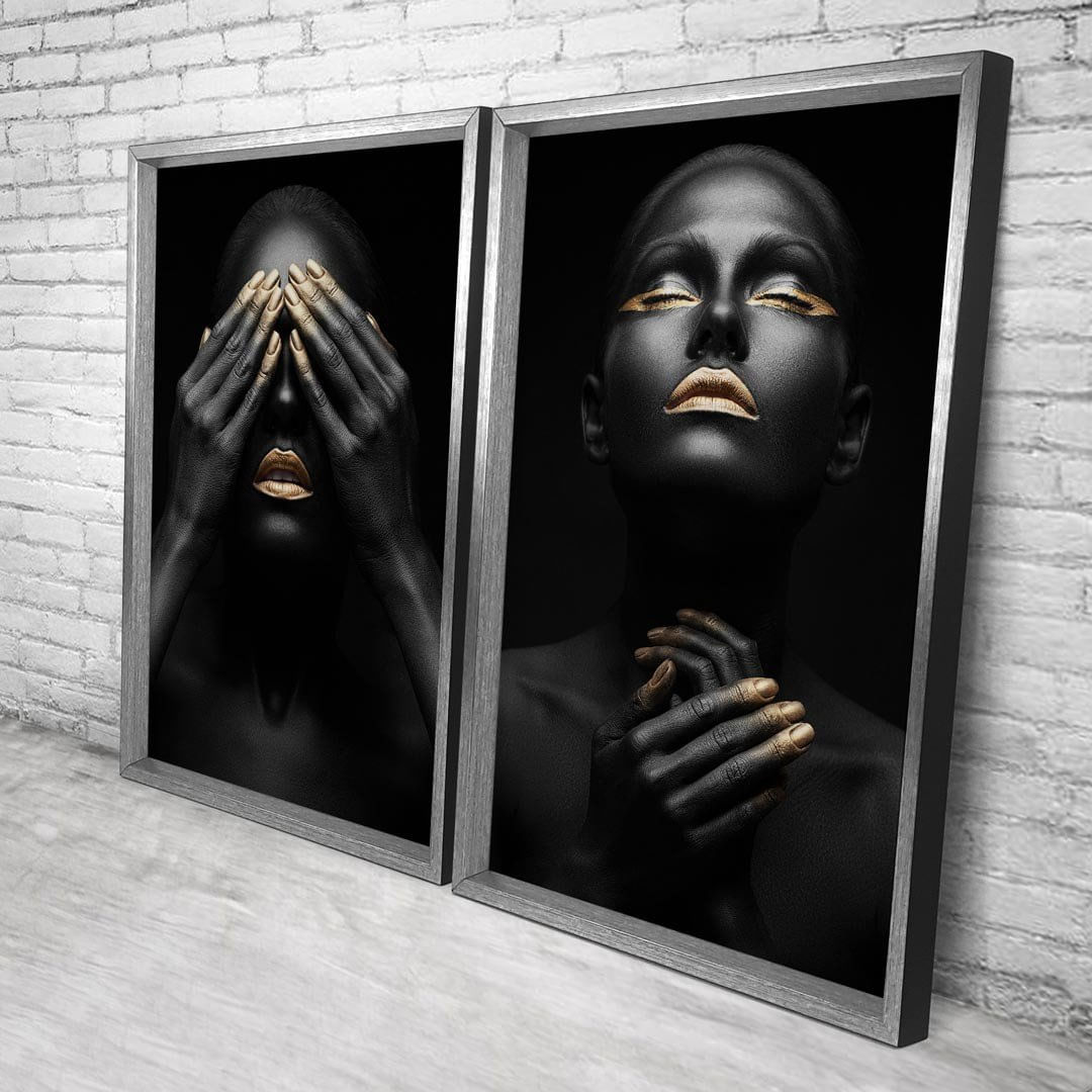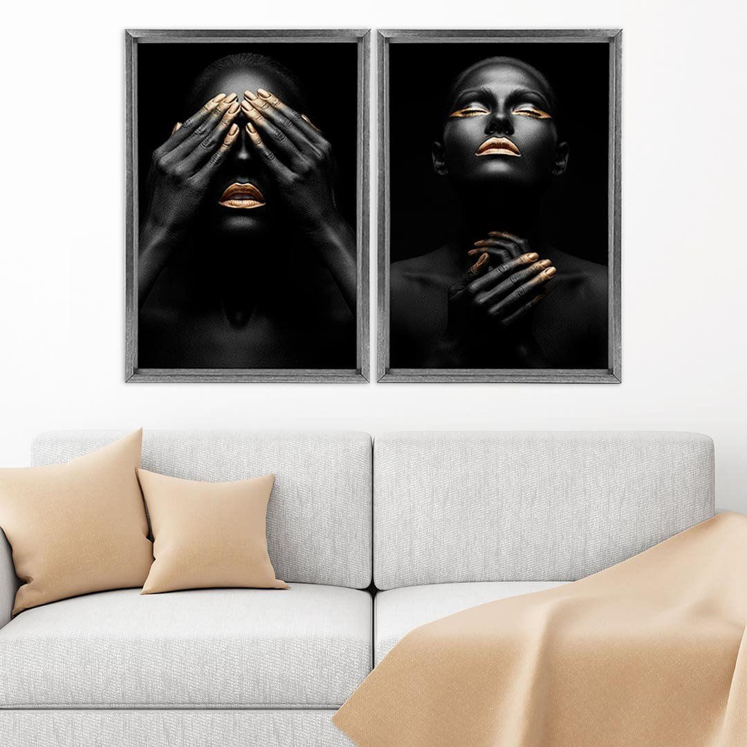 Quadro com Moldura Chanfrada Mulheres Ouro GRAFITTI METALIZADO - Grande - ...Características Gerais do Produto:.. Tamanho dos Quadros: - Tamanho Grande 90x122cm (60x90cm cada Quadro), - Tamanho Médio 60x82cm (40x60cm cada Quadro). Acabamento: Acabamento Selado, Moldura. Tecido: 100% Nylon. Estampa: Digital de Alta Qualidade, Aplicado por Termotransferência. Conteúdo da Embalagem: Conjunto 2 Quadros Decorativos. Gênero: unissex. Faixa etária: Acima de 13 anos...Garantia:.. Garantia contra defeito de fabricação
